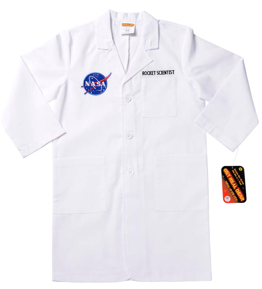 All Systems Go…..Ready for Lift Off. If you’re going to be a Rocket Scientist you will need to look the part at the controls. This lab coat is made of a high quality poly/cotton blend. There is a NASA meatball patch on the right chest and the words “ROCKET SCIENTIST” embroidered above the pocket on the left chest.